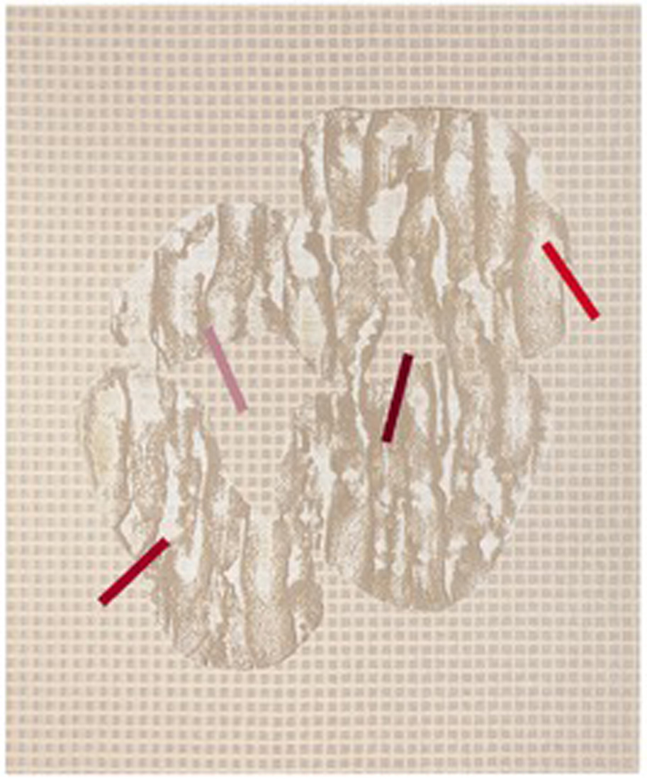 Serigrafia ja akryyli kankaalle, puupiirros paperille